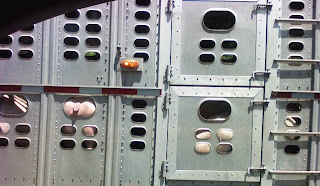 #1: Chickens, pigs, and cows - oh my: Another disclosure: I'm a vegetarian. But my husband and son still eat some meat. Not so much after seeing the documentary Food, Inc. You see, nearly all food in grocery stores, most restaurants, and foodservice trucks come from a giant food system designed to get your food to you as cheaply as possible, and in large part, due to the government subsidies on corn and fuel. What's wrong with that? When it comes to animals, including poultry, beef and pork (a huge polluting industry in NC) - you can rest assured that those animals were raised in very confined spaces, generally treated poorly, loaded with antibiotics to keep them from getting sick due to the poor nature of their diets (almost always corn to fatten them in the cheapest way possible), possibly suffering injury and physical mutilation by other animals or the farmer (in attempt to stop some behaviors going on due to the crowding), slaughtered and processed on a fast-moving assembly line manned by cheap (and yes, many illegal) workers. These kinds of operations cause all kinds of pollution in addition to all the air pollution from the transport of animals from 'farm' to slaughter to processing to distribution to store shelf.